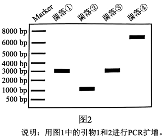 采用PCR技术鉴定R基因的敲除结果。PCR通过变性、复性和延伸三步,反复循环,可实现基因片段的________。R基因敲除过程中,可发生多种形式的同源区段交换,PCR检测结果如图2所示,其中R基因敲除株为菌落________(填序号),出现菌落④的可能原因是________。