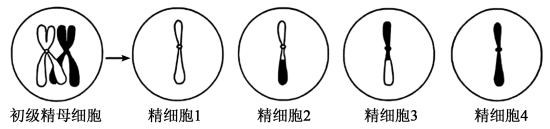 11. 某动物初级精母细胞中,一部分细胞的一对同源染色体的两条非姐妹染色单体间发生了片段互换,产生了4种精细胞,如图所示。若该动物产生的精细胞中,精细胞2、3所占的比例均为4%,则减数分裂过程中初级精母细胞发生交换的比例是( )