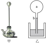 9. 图甲为1593年伽利略发明的人类历史上第一支温度计,其原理如图乙所示。硬质玻璃泡a内封有一定质量的气体(视为理想气体),与a相连的b管插在水槽中固定,b管中液面高度会随环境温度变化而变化。设b管的体积与a泡的体积相比可忽略不计,在标准大气压
