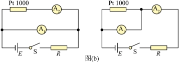 (2)兴趣小组设计了如图(b)所示的甲、乙两种测量铂电阻阻值的电路图,能准确测出铂电阻阻值的是________(填“甲”或“乙”),保护电阻R应选________(填“