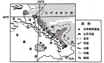 河西走廊是“一带一路”建设的重要路段,独特的地形地貌为该地种子繁育提供了天然的隔离屏障,加上优越的气候条件,河西走廊成为玉米制种的黄金区域,该地的山丹马场牧草丰盛,是亚洲第一大马场。图为河西走廊区域简图,据此完成22~25题。