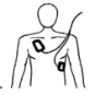1. Place one pad onto the upper-right chest(胸膛). Place the other onto the lower-left chest. 2. Connect the pads to the AED. 3. Don't touch the patient! Wait for the result of the examination. 4. Press the button when a shock is advised. 5. Give CPR(心肺复苏)if needed. |