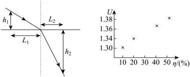 (1)为测糖水的折射率与浓度的关系,设计如下实验:某次射入激光,测得数据如图,则糖水的折射率为 ___________ 。