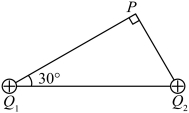 11. 两个点电荷Q1与Q2静立于竖直平面上,于P点放置一检验电荷恰好处于静止状态,PQ1与Q1Q2夹角为30°,PQ1⊥PQ2,则Q1与Q2电量之比为___________ ,在PQ1连线上是否存在其它点能让同一检验电荷维持平衡状态___________ (存在,不存在)。