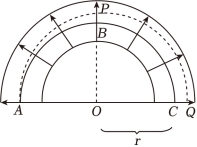 4. 某种静电分析器简化图如图所示,在两条半圆形圆弧板组成的管道中加上径向电场。现将一电子a自A点垂直电场射出,恰好做圆周运动,运动轨迹为ABC,半径为r。另一电子b自A点垂直电场射出,轨迹为弧APQ,其中PBO共线,已知BP电势差为U,|CQ|=2|BP|,a粒子入射动能为Ek,则( )