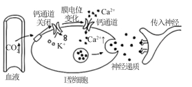 A. Ⅰ型细胞受CO2浓度升高刺激时,胞内K+浓度降低,引发膜电位变化