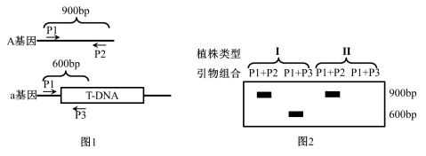 (3)为进一步验证基因A的功能,将另一个A基因插入Aa植株的3号染色体。仅考虑基因A和a,该植株会产生_____种基因型的可育花粉,其中具有a基因的花粉占比为_____。该植株自交得到F1.利用图1所示引物P1和P2、P1和P3分别对F1进行PCR检测,电泳结果如图2所示。根据电泳结果F1植株分为Ⅰ型和Ⅱ型,其中Ⅰ型植株占比为_____。F1中没有检测到仅扩增出600bp条带的植株,其原因为_____。