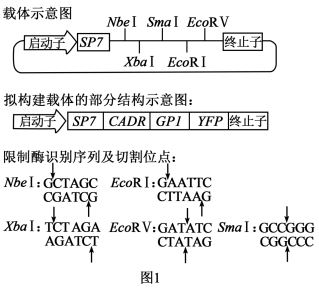 (2)载体中可用的酶切位点信息和拟构建载体的部分结构如图1所示。在将CADR、GP1和YFP基因逐个构建到载体时,为避免错误连接,需向以上三个基因的两端分别添加限制酶识别序列,其中GPl两端应添加_____(填两种限制酶)的识别序列。用DNA连接酶连接时,可催化载体和目的基因之间形成_____键。