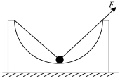 4. 如图,内壁截面为半圆形的光滑凹槽固定在水平面上,左右边沿等高。该截面内,一根不可伸长的细绳穿过带有光滑孔的小球,一端固定于凹槽左边沿,另一端过右边沿并沿绳方向对其施加拉力F。小球半径远小于凹槽半径,所受重力大小为G。若小球始终位于内壁最低点,则F的最大值为( )