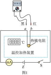 (1)某学习小组把热敏电阻置于带有温控的加热装置中,利用图1所示电路研究热敏电阻的温度特性。