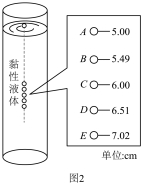 闪光一次。装置及所拍照片示意图如图2所示(图中的数字是小球到液面的测量距离,单位是