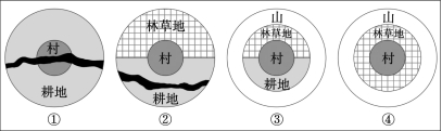乡村聚落的选址与人们的生产生活紧密相关,下图为“我国西北某地乡村聚落四种模式图”,完成下面小题。