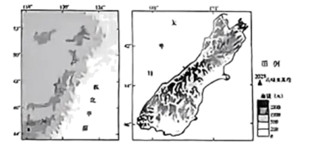 材料一:我国的大兴安岭与新西兰的南阿尔卑斯山,走向相似,均位于中纬度地区,下图为“大兴安冷和南阿尔卑斯山的位置及地形示意图”。