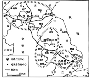 (2)依据南京都市圏和苏锡常都市圈的名称差异概括各自的空间结构,并简述淮海经济区的空间特点。