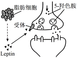 10. 脂肪细胞分泌的生物活性蛋白Leptin可使兴奋性递质5-羟色胺的合成和释放减少,阻碍神经元之间的兴奋传递,如图所示。下列相关叙述错误的是( )