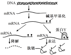 15. 甲基化读取蛋白Y识别甲基化修饰的mRNA,引起基因表达效应改变,如图所示。下列相关叙述正确的是( )