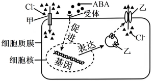 16. 研究小组开展了Cl-胁迫下,添加脱落酸(ABA)对植物根系应激反应的实验,机理如图所示。下列相关叙述错误的有( )