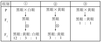 24. 某昆虫眼睛的颜色受独立遗传的两对等位基因控制,黄眼基因B对白眼基因b为显性,基因A存在时,眼色表现为黑色,基因a不影响B和b的作用。现有3组杂交实验,结果如下。请回答下列问题: