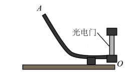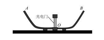 11. 小明同学探究机械能守恒定律,实验装置如图。实验时,将小钢球在斜槽上某位置A由静止释放,钢球沿斜槽通过末端O处的光电门,光电门记录下钢球的遮光时间t。用游标卡尺测出钢球的直径d,由