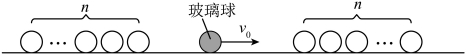 14. 如图所示,在光滑水平面上,左右两列相同的小钢球沿同一直线放置。每列有n个。在两列钢球之间,一质量为m的玻璃球以初速度