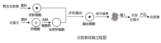 2. 图示我国利用体细胞培育出世界上第一头北极狼