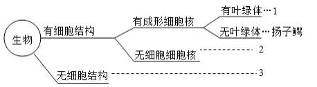 生物分类图解,其中1、2、3可代表的生物分别是( )
