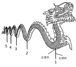 13. 小明在灯会上看到如图所示的龙形花灯(以下简称龙灯)。龙灯通过支撑件与支撑杆连接。小明准备设计一款具有动态效果的龙灯,请完成以下任务: