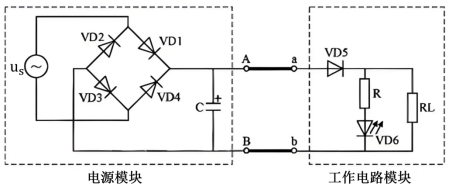 11. 如图所示是小明设计的电源模块和工作电路模块。下列分析中不正确的是( )