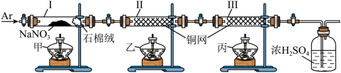实验步骤:先缓慢通入Ar气,排尽装置内空气;关闭Ⅰ左侧阀门,点燃酒精灯;一段时间后,Ⅱ中灼热的铜网变黑,熄灭酒精灯甲;再次缓慢通入Ar气……