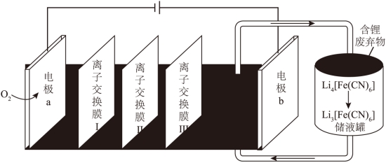 形式回收含锂废弃物中的锂元素,其工作原理如图所示。