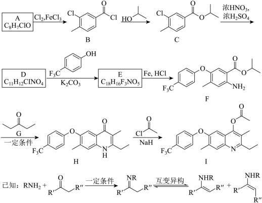 18. 化合物I具有杀虫和杀真菌活性,以下为其合成路线之一(部分反应条件已简化)。