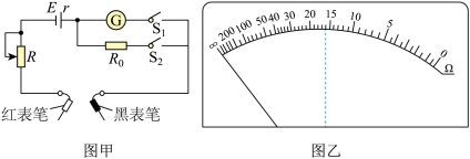 ”挡)的欧姆表,其内部电路如图甲所示。电源为电池组(电动势E的标称值为