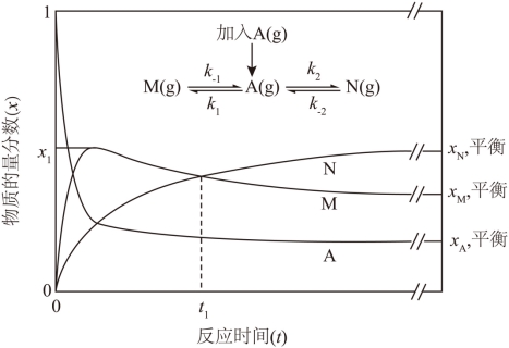 ,各组分物质的量分数x随反应时间t变化的曲线如图(反应速率
