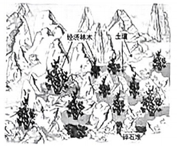 (2)经济林木和碎石堆可保持水土;提高土地利用率;提高植被覆盖率;增加经济收入。