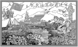 18. 剪纸作品《人民海军向前进》中海军战士身后矗立着高高的华表,有象征意义。请简要分析。