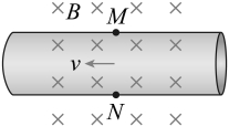 12. 电磁流量计可以测量导电液体的流量Q——单位时间内流过管道横截面的液体体积。如图所示,内壁光滑的薄圆管由非磁性导电材料制成,空间有垂直管道轴线的匀强磁场,磁感应强度为B。液体充满管道并以速度v沿轴线方向流动,圆管壁上的