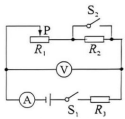 )、一个电压表、一个滑动变阻器、三只开关、若干阻值不同的定值电阻(阻值已知)和导线,设计出如图甲所示的实验电路图。