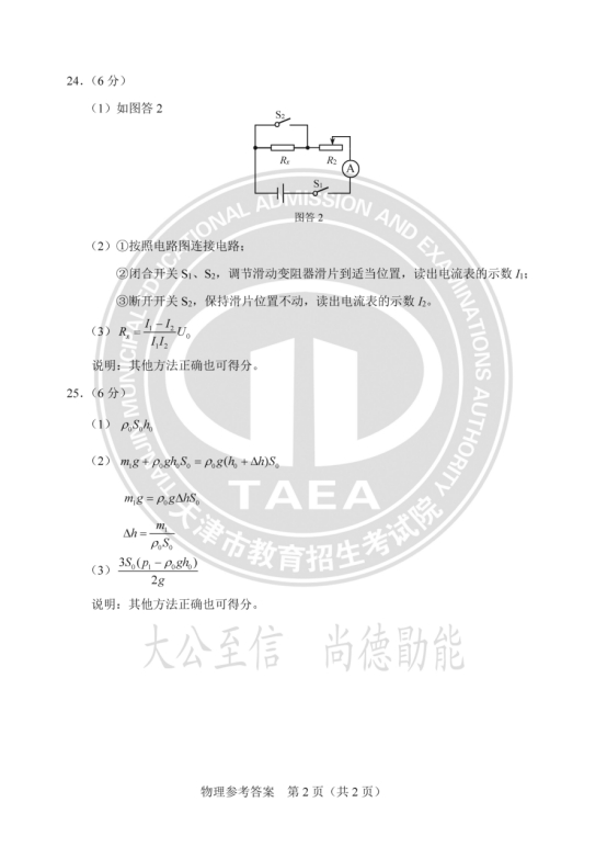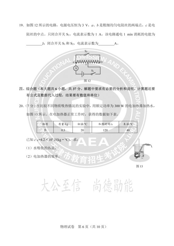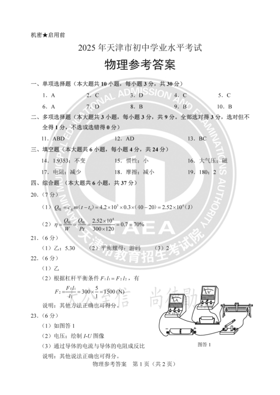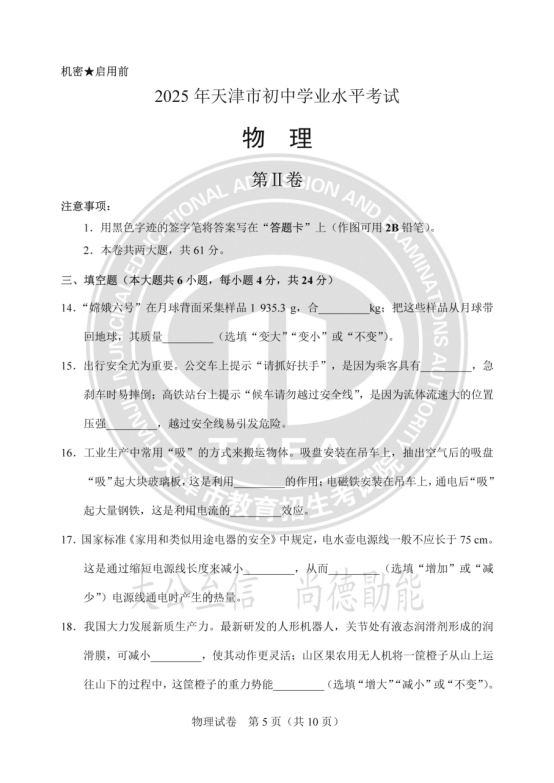 2025年天津中考物理真题及答案图片版