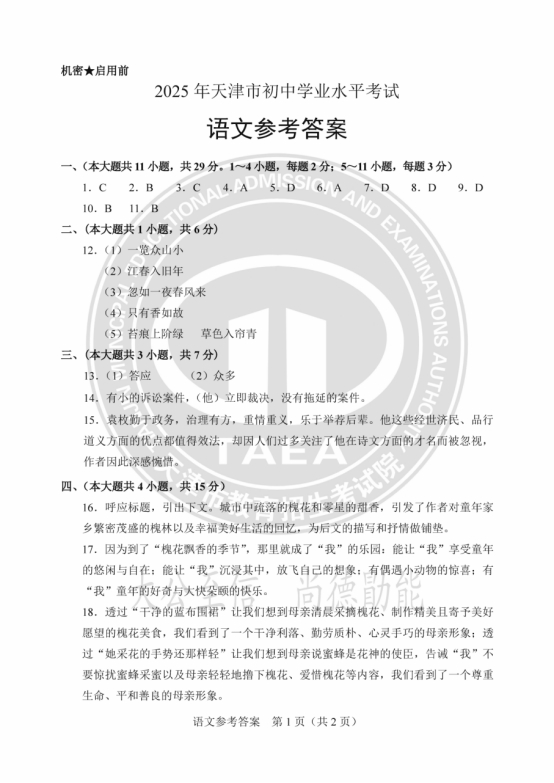 2025年天津中考时间安排公布 6月下旬举行考试 7月上旬公布成绩