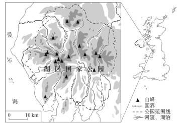 【分析】本题以英国湖区国家公园为材料设置试题,涉及湖泊分布特征、形态特征和水文特征、冰川作用对湖泊分布和形态的影响、河流水文特征等相关知识点,考查学生获取和解读地理信息、调动和运用地理知识的能力,体现综合思维、区域认知等核心素养。