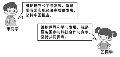 (2)观点片面。当前国际竞争的实质是以经济和科技实力为基础的综合国力的较量。高质量发展是全面建设社会主义现代化国家的首要任务,科技是第一生产力,维护世界和平与发展既要促进经济发展,又要参与科技合作与竞争。和平、发展、合作、共赢成为时代潮流。中国是负责任大国,构建人类命运共同体是各国解决全球性问题的必然选择,维护世界和平与发展既要中国勇于担当,又要各国承担共同责任。