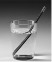 7. 如图,铅笔斜插在水中,看见水中的铅笔向上弯折,解释这一现象的光路是( )