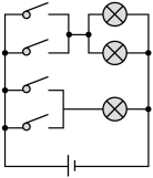 11. 观察电动自行车发现:捏紧左边或右边的刹车把手,车尾的同一盏刹车指示灯就会亮起;拨动向左或向右的转向灯开关,车尾对应一侧的转向指示灯就会亮起。车尾指示灯电路原理图合理的是( )