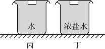 方案二:如图丙、丁,在装满相同温度的水和浓盐水的玻璃杯中,分别放入相同的0℃的冰块,盖上杯盖使冰块保持浸没,记录冰块完全熔化的时间分别为