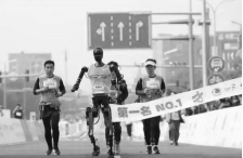 19. 某款人形机器人参加半程马拉松比赛,安装在腹部的摄像头相当于一个______透镜,远处的物体成倒立、______的实像。该机器人跑步由电动机驱动,电动机的工作原理是磁场对______有力的作用。以并肩运动的陪跑员为参照物,机器人是______的。机器人跑完21km路程用时约为2h40min,平均速度约为______km/h。(计算结果保留整数)