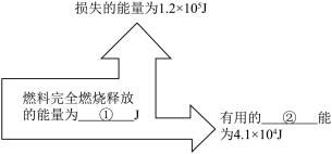 18.汽油机是燃油汽车的动力来源之一。如图所示是某台汽油机工作时的能量数据,图中横线处应填写的内容是:① ② 。若汽油的热值为