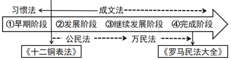 19.如下是“罗马法学演变”流程图,对其内容解读正确的是( )