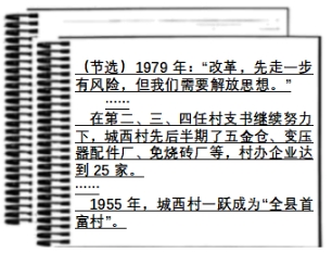时间:2021年4月14日 地点:杭州国际博览中心 宣介人:浙江三门县城西村 村支书 章国进 宣介理由: 曾经“饭都吃不饱”的穷村庄,如今成为年收入上千万元的“浙江省小康示范村”。宣介内容: 九任村支书带领群众接力致富的故事 | 历史印记:35本记录本,记录密密麻麻,一个个梦想成真。 |