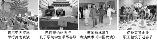 10. 2025年春节,全球多地开展了丰富多彩的年俗活动(如下图)。从材料中我们可以感受到( )