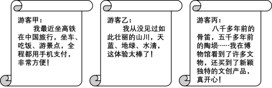 (1)结合国外游客的分享,联系道德与法治课程内容,参考示例简要说明新时代的中国是怎样的中国。(写出两条即可)